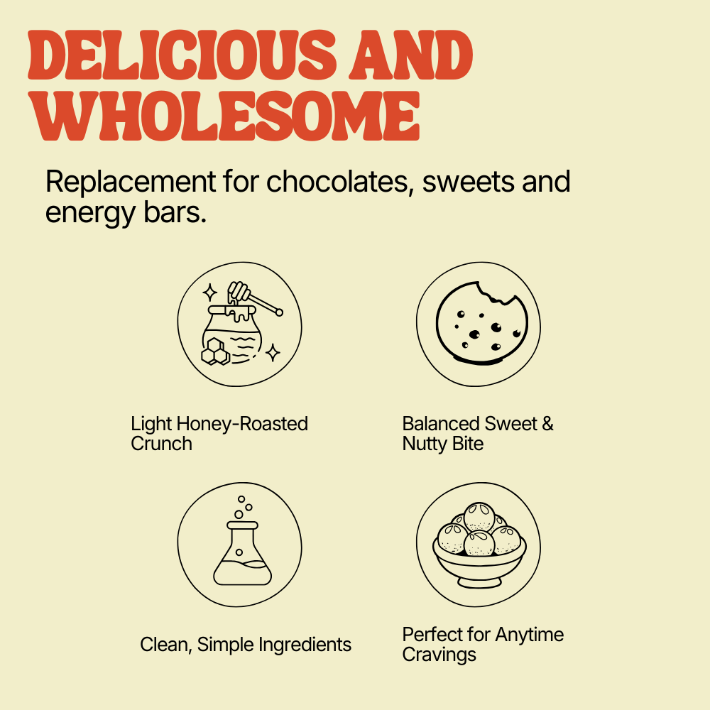 A crunchy, protein-packed blend of almonds, walnuts, pistachios, cashews, seeds, peanuts, and roasted chickpeas, baked with natural honey. Perfect as a pre-workout snack or for anytime munching!